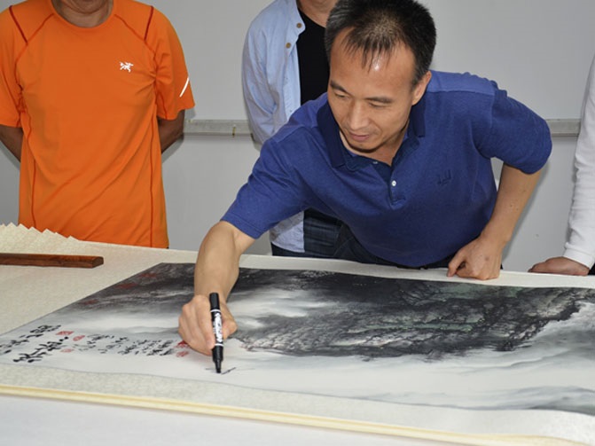 神舟六号航天员费俊龙将军在《浮云山霭莽苍苍》限量高仿作品上签名
