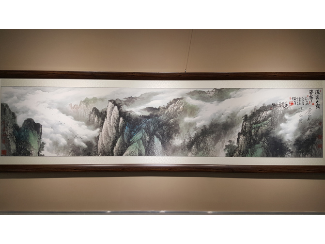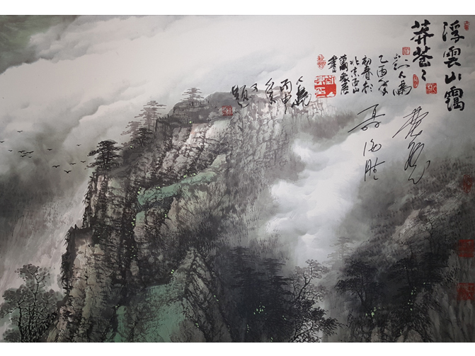 神舟六号载人飞船航天员费俊龙、聂海胜与艺术家刘人岛共同签名的《浮云山霭莽苍苍》限量高仿作品
